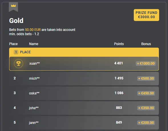 ゴールド:50ユーロ以上のベット