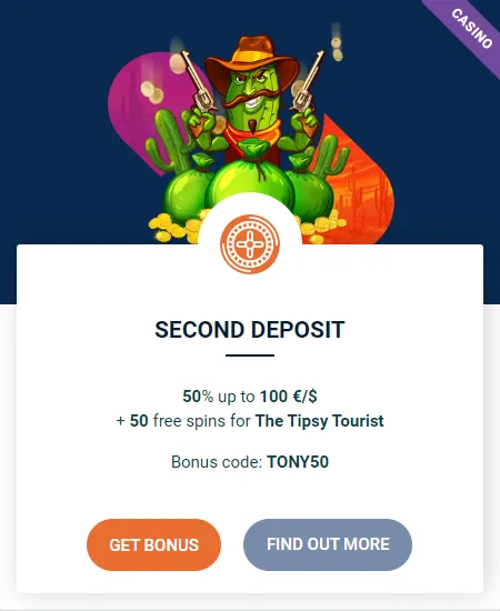 TonyBetに新しく登録し、初めて入金したユーザー向けのプロモーションです。