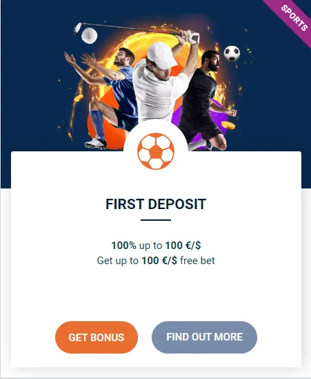 初回入金スポーツボーナス:100%(最大100ユーロ))