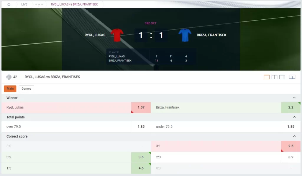 卓球のライブベッティング